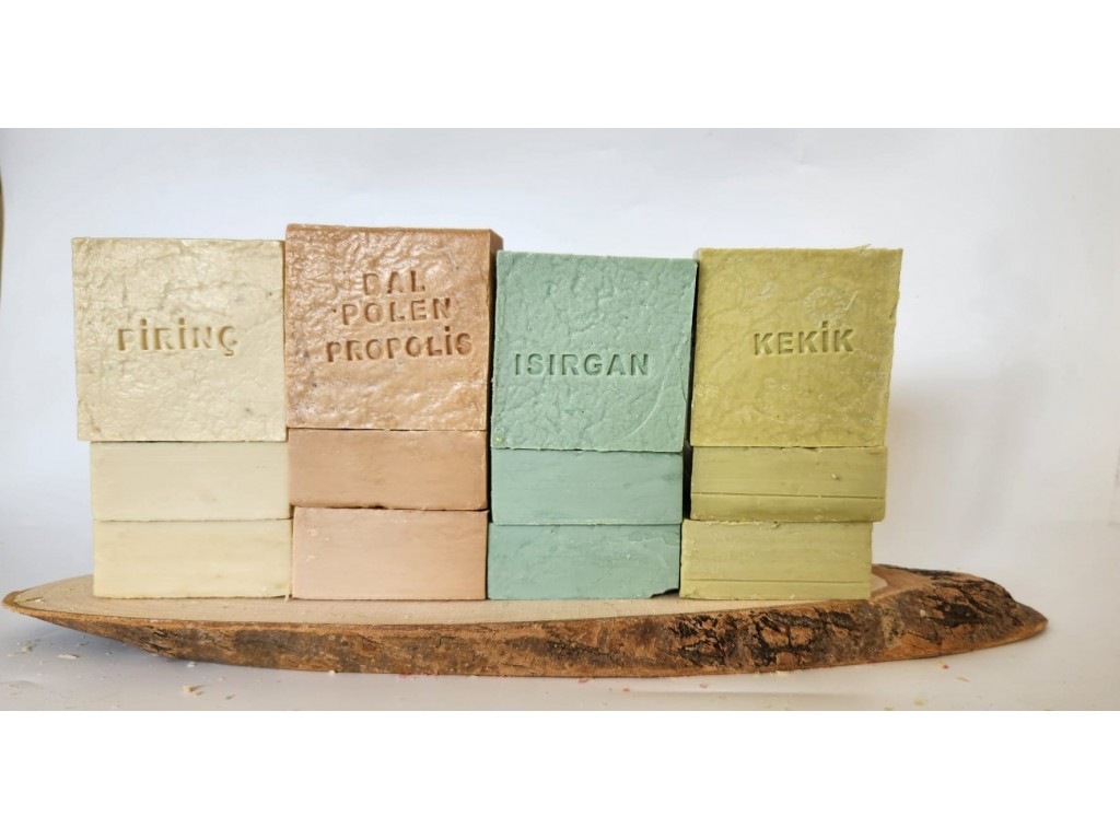 KENTEN MARKASININ Isırgan sabunu: İçeriğindeki ısırgan yaprakları saçlı deride ve vücutta uyarıcı etki yaparak kan dolaşımını hızlandırır, cilde canlılık ve tazelik vermesine yardımcı olur. Cildi tahriş etmeden temizler, bileşimindeki saf zeytinyağı cildi besler,kurumasını önler, kalıcı nemlilik ve yumuşaklık sağlar. Pirinç sabunu: Pirinç Doğal Sabunun bileşiminde içerdiği özler sayesinde cilt bakımından çok yönlü etkili bir sabundur. Cildi besler, sağlıklı bir görünüm kazandırır. Cilt yaraları, kızarıklık, kaşıntı, sivilce, hastalıklarında ve hertürlü cilt deri rahatsızlıklarında temizleyici sabun olarak kullanılabilir. Her cilt tipine uygundur. Kekik sabunu: genel olarak oluşan deri hastalıklarına iyi gelir. Kekik sabunu yüzde ya da vücudun herhangi bir yerinde oluşan siyah noktaları temizler. Kekik sabunu ciltte oluşan sarmalara ve çatlaklara iyi gelir. Kekik sabunu cilt temizliğini sağlar ve tıkanmış gözenekleri açarak cildin nefes almasını sağlar. Ballı sabun: içeriğindeki e vitamini ile cildi nemlendirir, besler. Nemlenen ve beslenen cilt kısa sürede canlılık kazanır. Dolayısıyla ballı sabun kuru, yıpranmış ve yorgun ciltlerde etkili çözümler sunar. Düzenli kullanıldığında cildi sıkılaştırır ve kırışıklıkları giderir